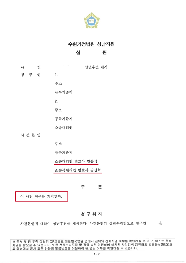 [성년후견/청구 기각] 고령 부모에 대한 성년후견 개시 청구가 기각된 사례